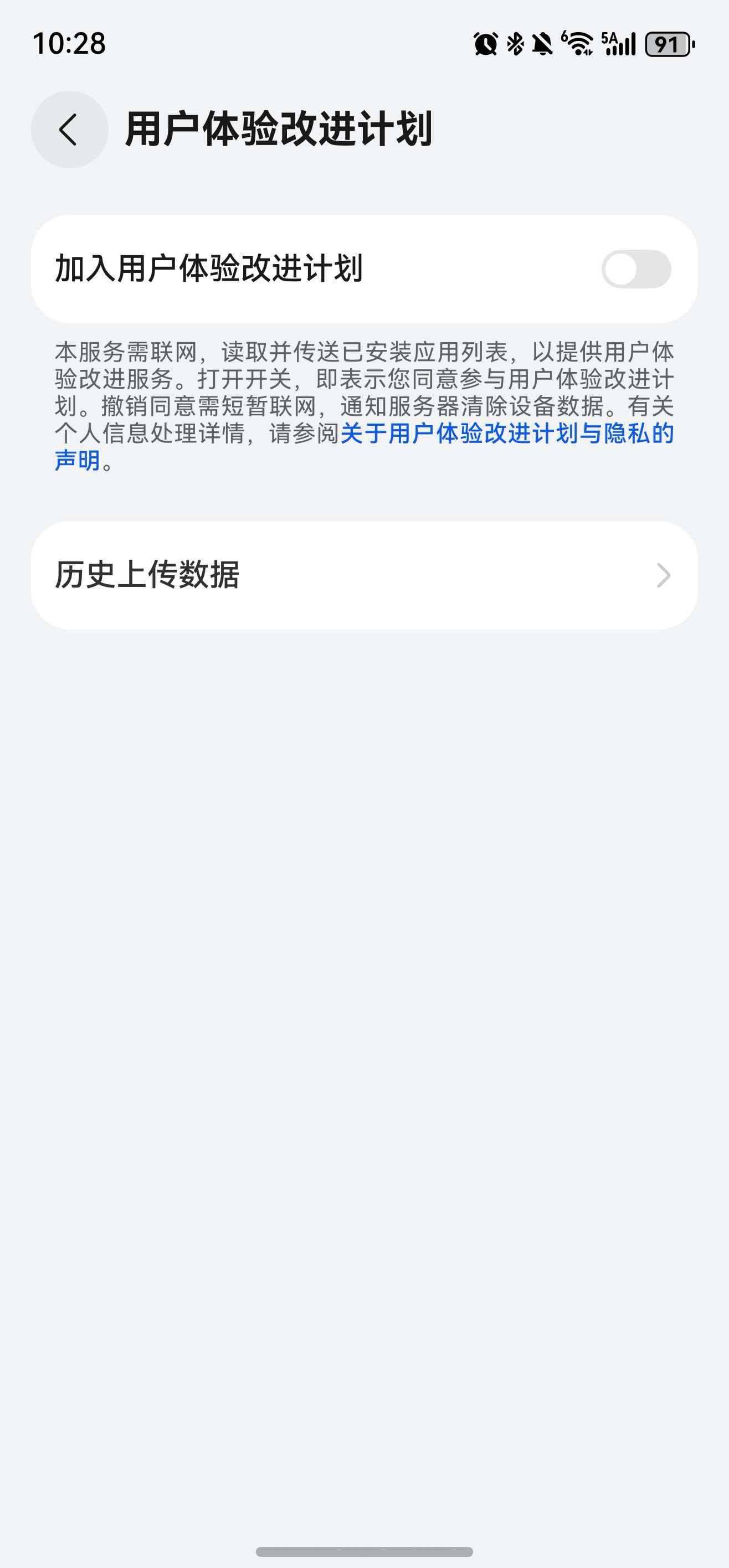 抖音上刷到“小西设计所”的视频,讲了手机购买后默认开启的几个开关,会默认开启分享数据,名曰“用户体验改进计划”。这个问题之前关过一次,后来就没关注。不知不觉又换了两部手机了,现在是华为的 Mate70Pro+。首先是系统的“用户体验改进计划”,这是属于手机厂家自己拿的数据,不知道干嘛去。“读取并传送已安装应用列表”,其他具体的可以看它的协议声明。可以看到还有一个历史上传数据,打开看了一下,正序排列